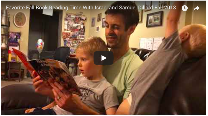 Israel and Sam always love book time! This book is one of our old favorite fall books called, “Picking Apples and Pumpkins,” by Amy and Richard Hutchings. “Mima” (Derick’s mom, Cathy) got it for us. It was a book Derick and his brother (Dan) had when they were growing up, so it’s extra special to read with our kids now. 🙂