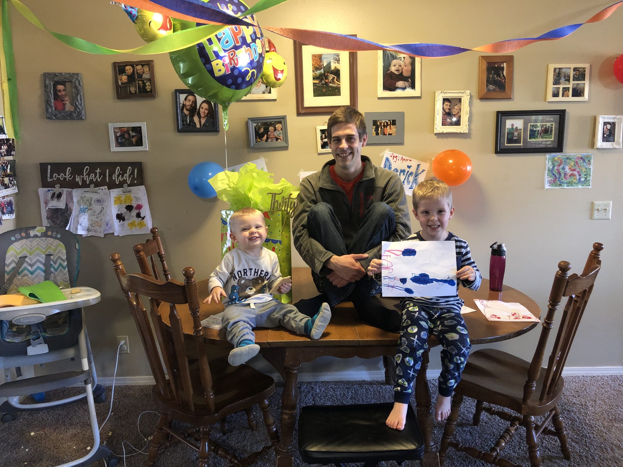 Just wanted to hop on here real quick and say happy birthday to the man of my dreams! We enjoyed a sweet little family dinner last night with Derick’s favorite spaghetti pie and a movie, a fun breakfast with donuts this morning, and we are planning to spend the evening together (he’s having to study this afternoon 🙁 ) while Derick’s mom has the boys. 🙂