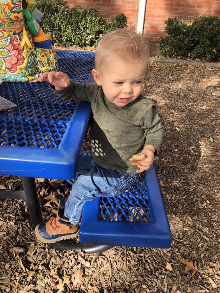 He talked me into hot chocolate because he was cold 😉 (Thanks Mima for keeping us stocked up!). Also, we love our mats from @elorainspiredon Instagram
