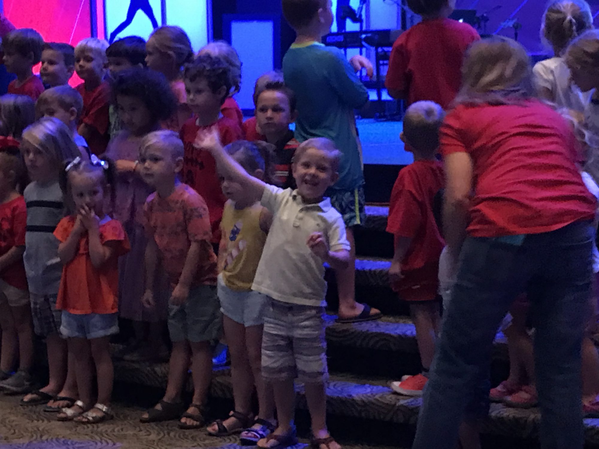 Jill, the children were all so cute up there on stage. That age is my favorite to work with. Do you know how many children total attended VBS this year? I think our church had a total of 80 though were were praying to have 100. Our church helps with VBS at a church down in Douglas, AZ which is near the border. They had 130 children this year! We are amazed at what God is doing.
